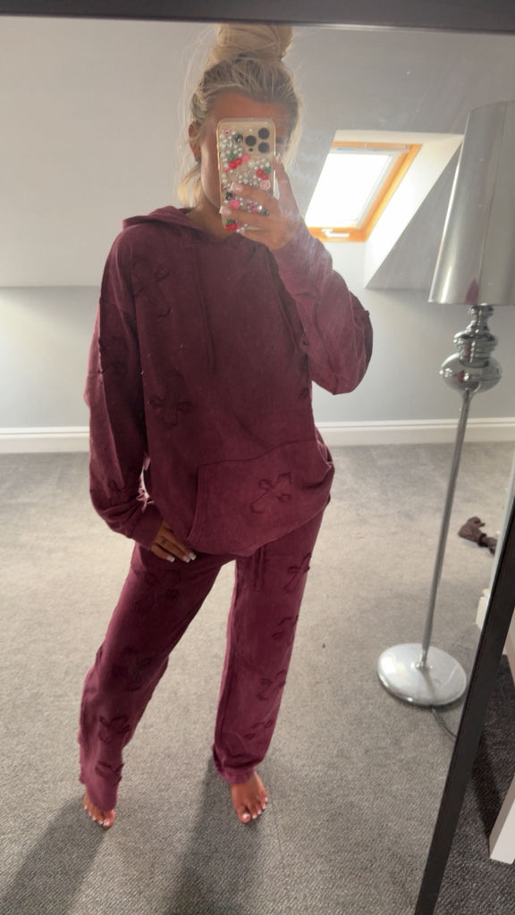 Oversized Acid Wash Cross Embroidered Hooded Fleece Co-ord Tracksuit