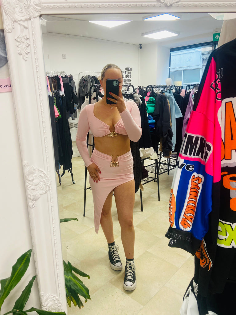 LUREX HALTER-STYLE BANDEAU CROP TOP AND MINI SKIRT CO-ORD