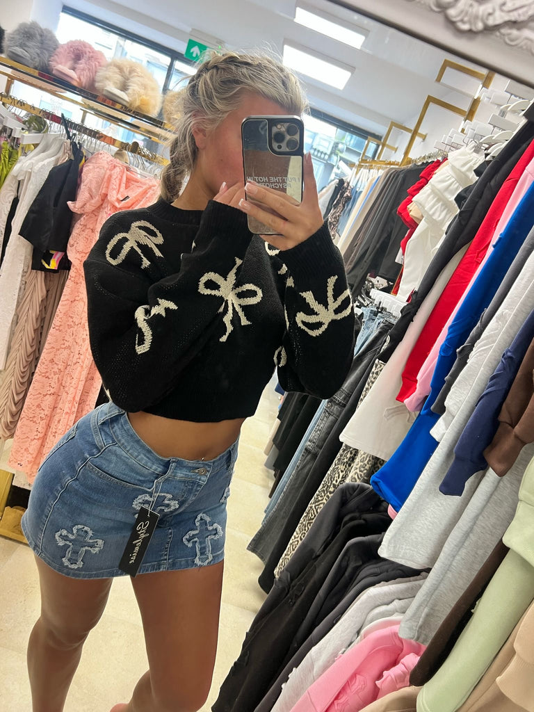 BOW DETAIL OVERSIZED CROPPED KNITTED JUMPER