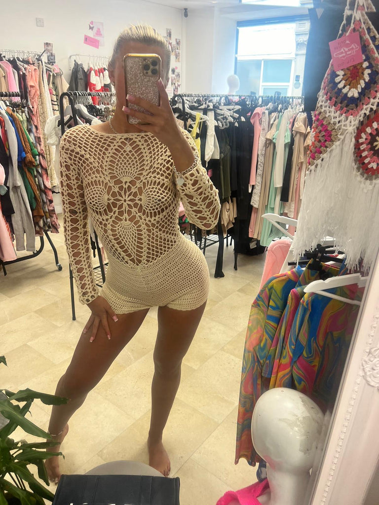 Yellow Slinky Long Sleeves Crop Top & Slit Mini Skirt Co-ord