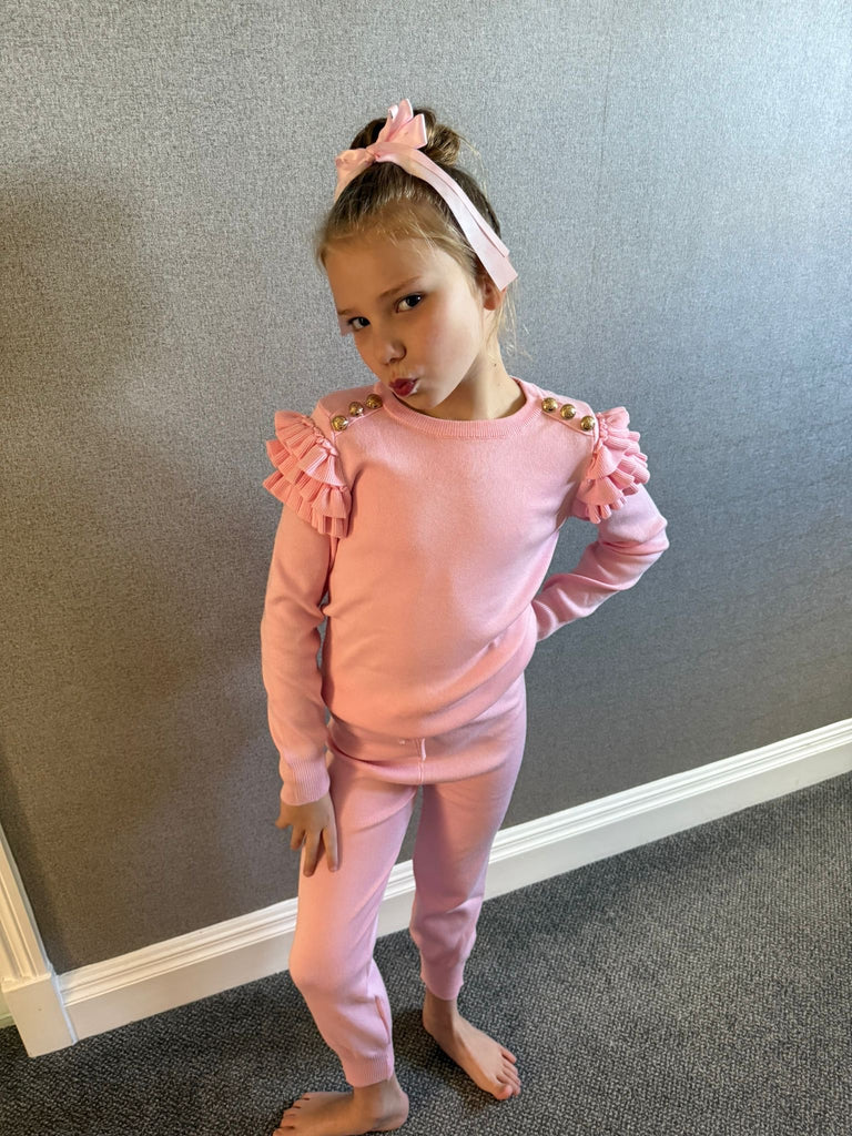 Girls Biscuit & Ivory Buttoned 2pc Set 4-14 Years