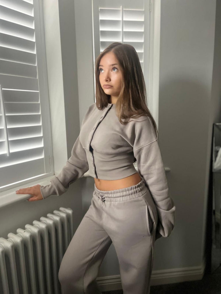BUTTON UP SWEATSHIRT & WIDE LEG TROUSER TRACKSUIT