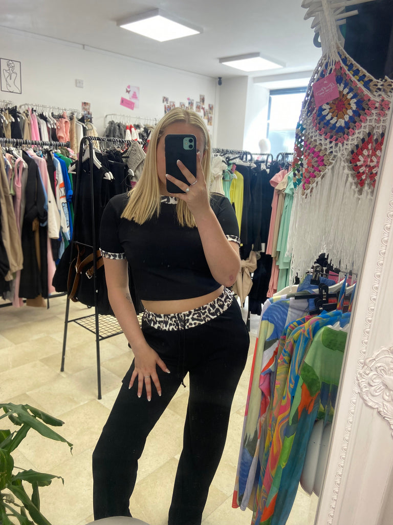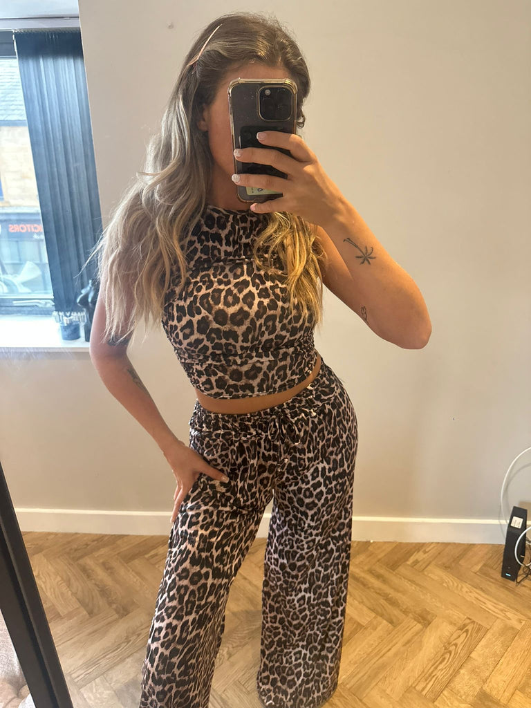 Leopard slinky Top and Wide Trouser Set