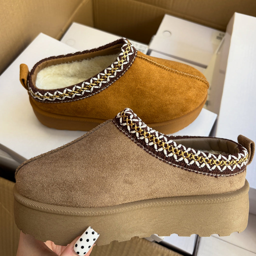 KIDS CAMEL EMBROIDED FLUFFY FAUX FUR PLATFORM SLIPPERS 30/35 SIZES