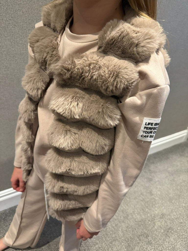 Girls Beige Faux Fur Quilted Gillet 4-10 Years