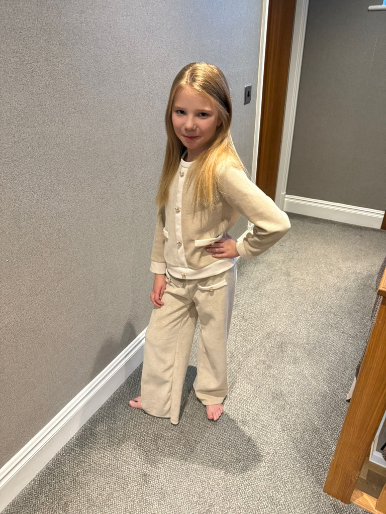 Girls Biscuit & Ivory Buttoned 2pc Set 4-14 Years