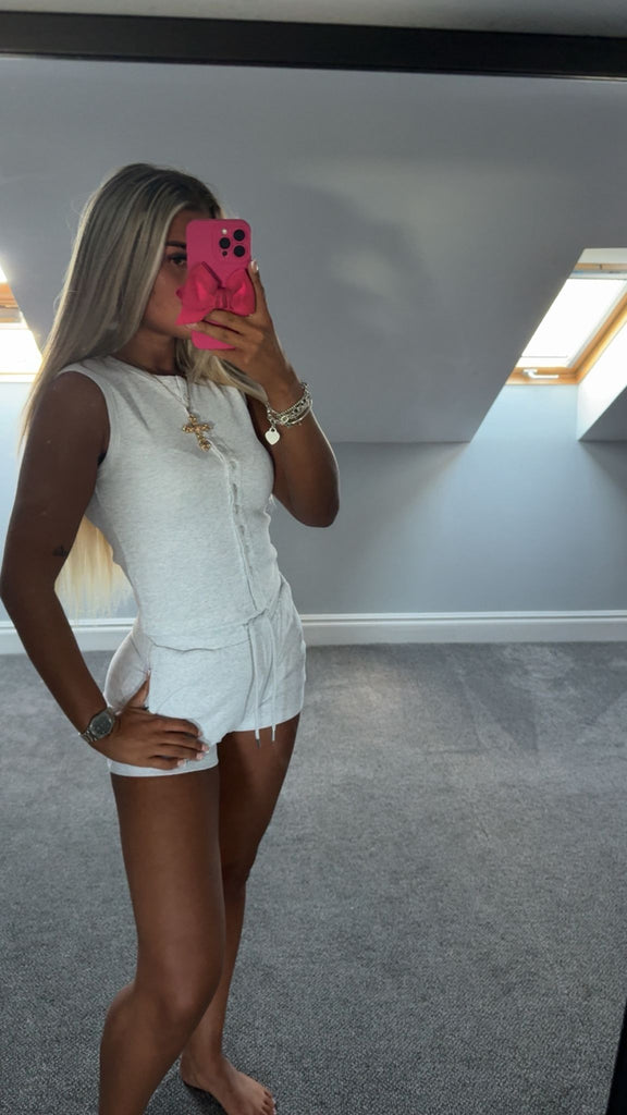 SleeveLess Ribbed button up set - Shorts and button up short sleeve top