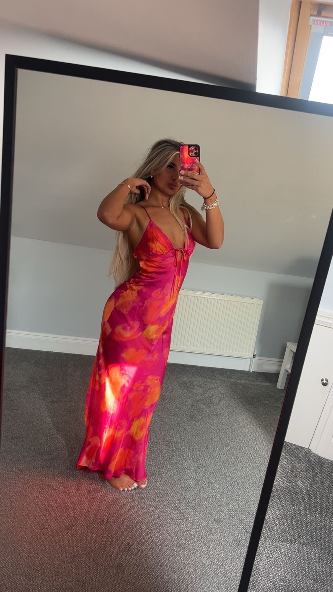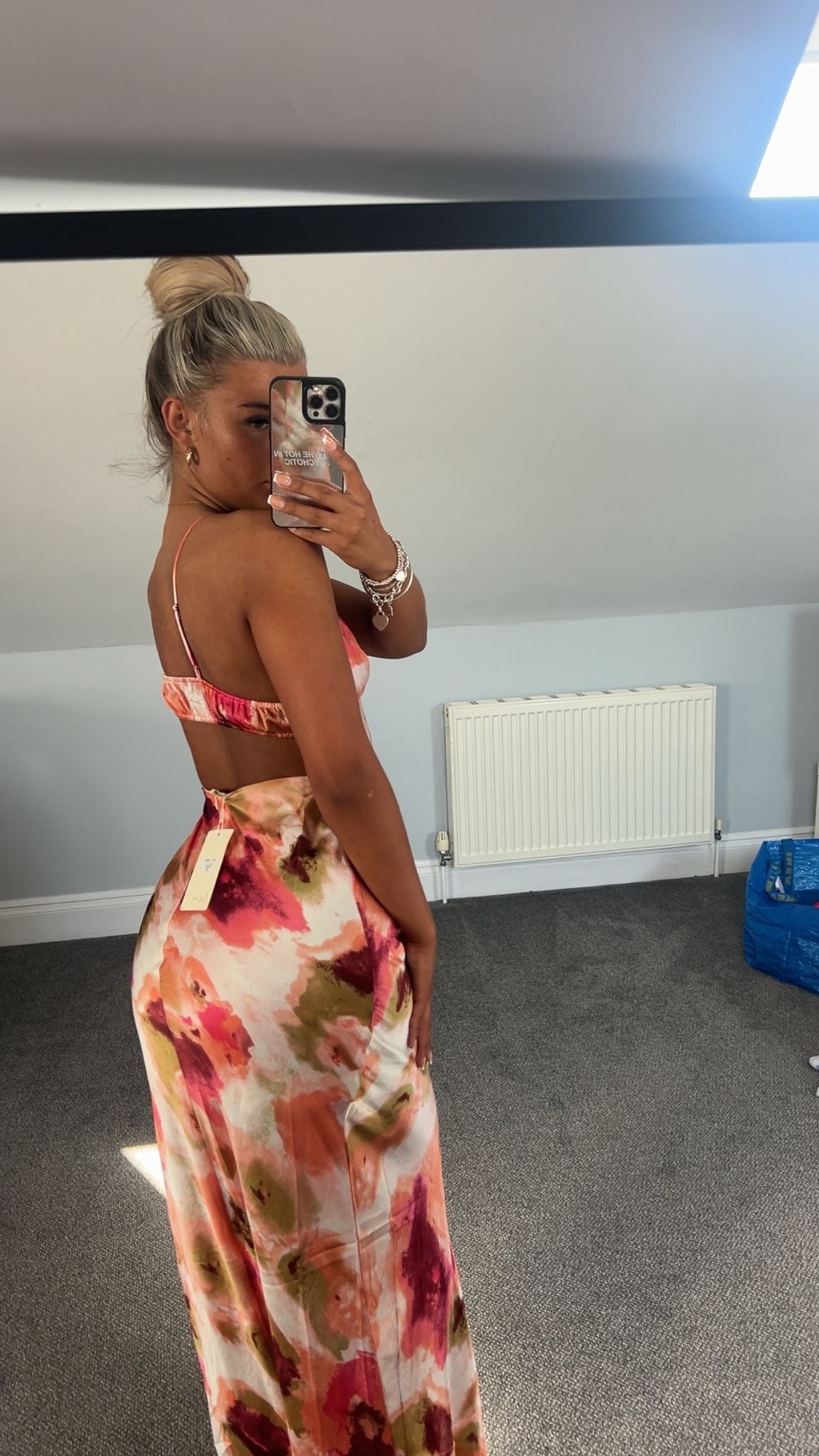 Watercolour Satin Cut Out Back Maxi Dress Long Length