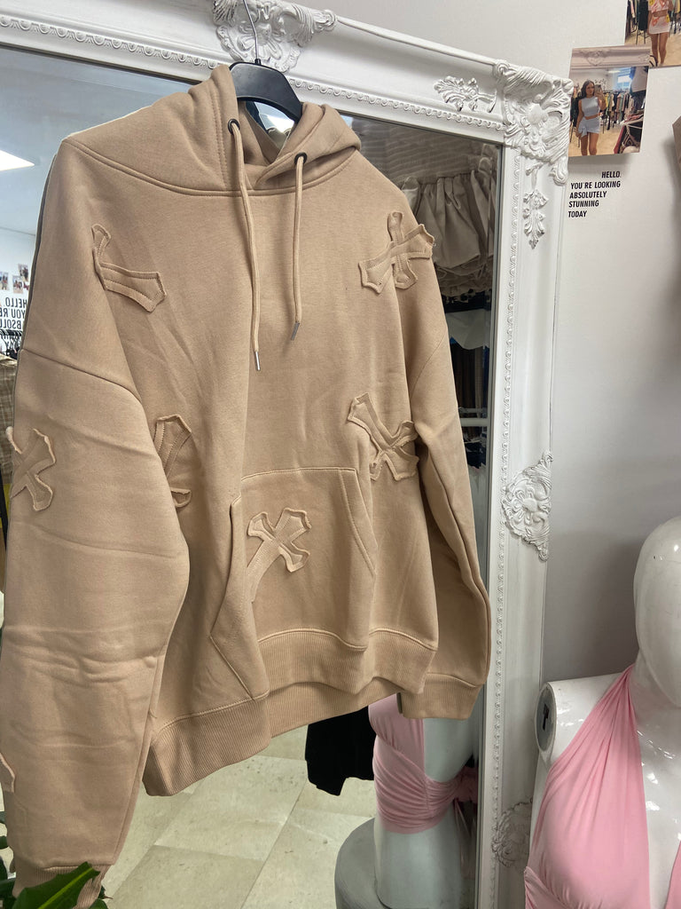 Oversized Acid Wash Cross Embroidered Hooded Fleece Co-ord Tracksuit