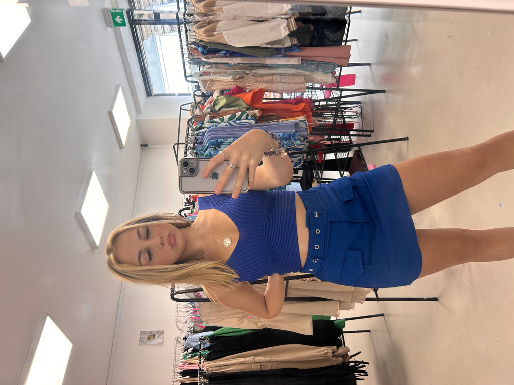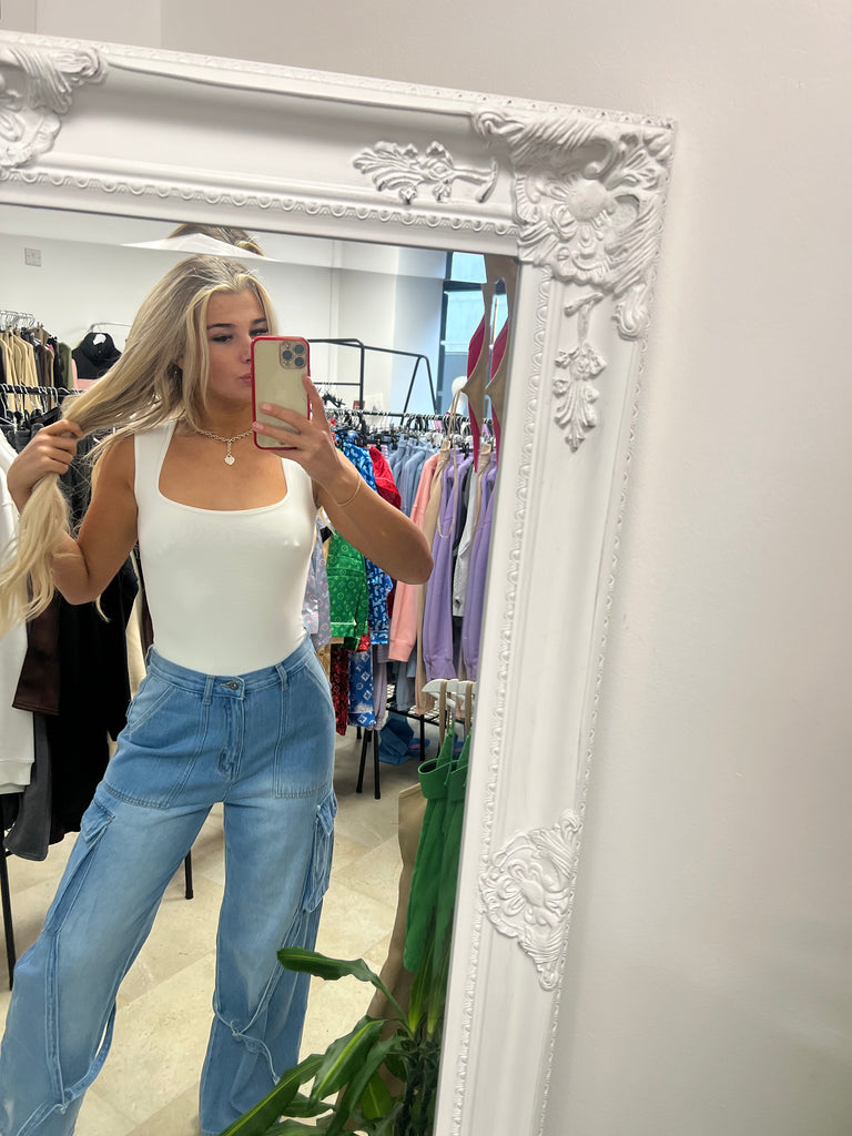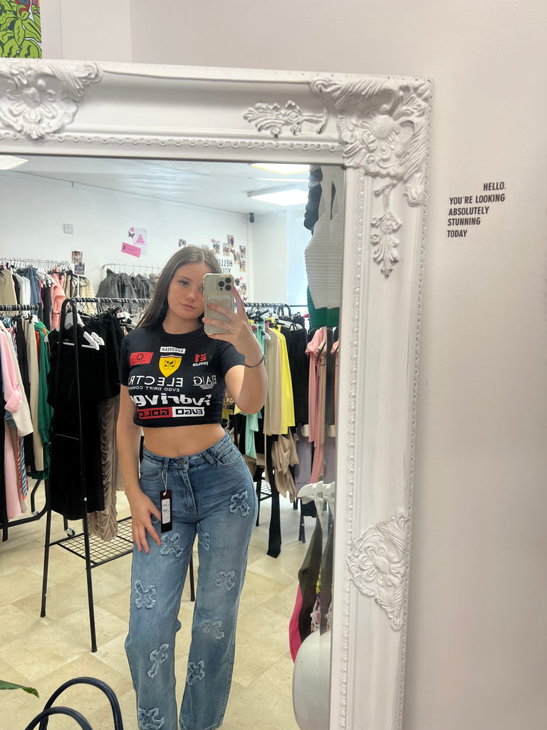 Top Diamante Studded Front Corset Style Bandeau Denim Crop Top