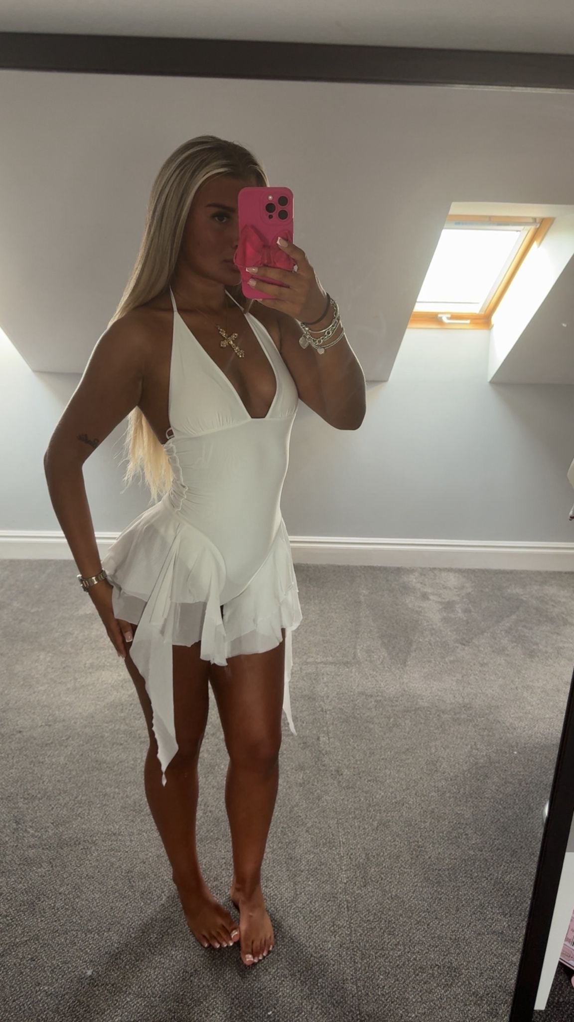 Halter Neck Slinky Frill Mini Bodysuit Dress